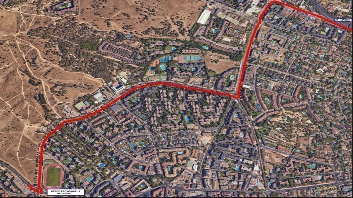 Ante el elevado flujo de vehículos que atraviesan esta zona para incorporarse en dirección Madrid por la A-6, especialmente desde el Este y el Sur del municipio, el Ayuntamiento propone un itinerario alternativo con el objetivo de aliviar la intensidad de tráfico en el interior urbano mientras duren los trabajos.